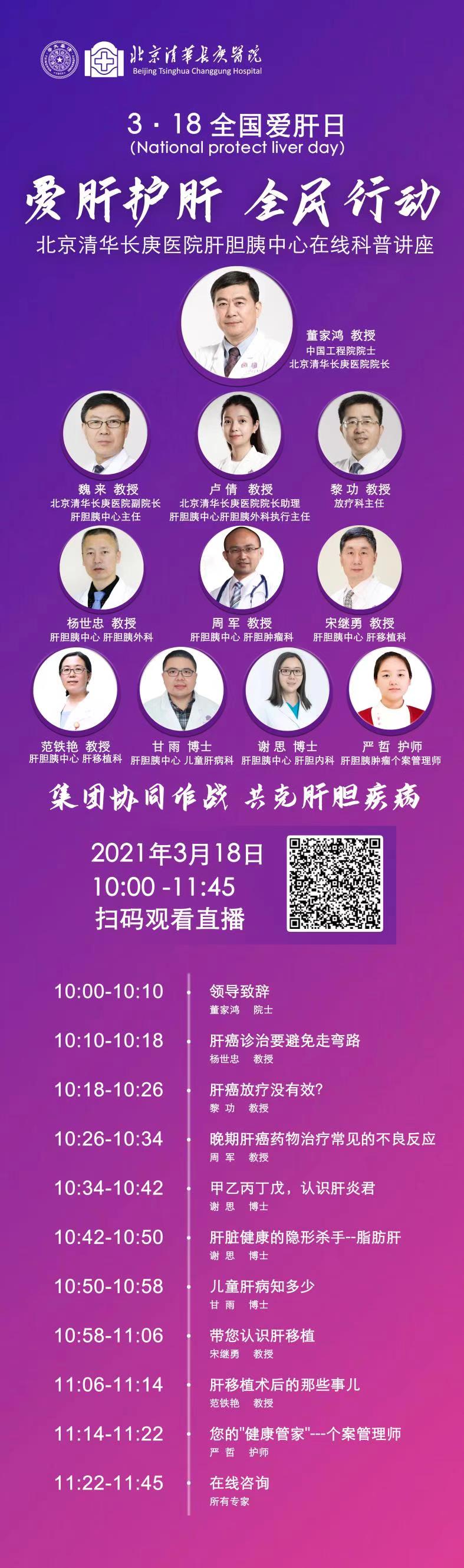 【直播预告】3.18全国爱肝日 爱肝护肝 全民行动——北京清华长庚医院肝胆胰中心在线科普讲座