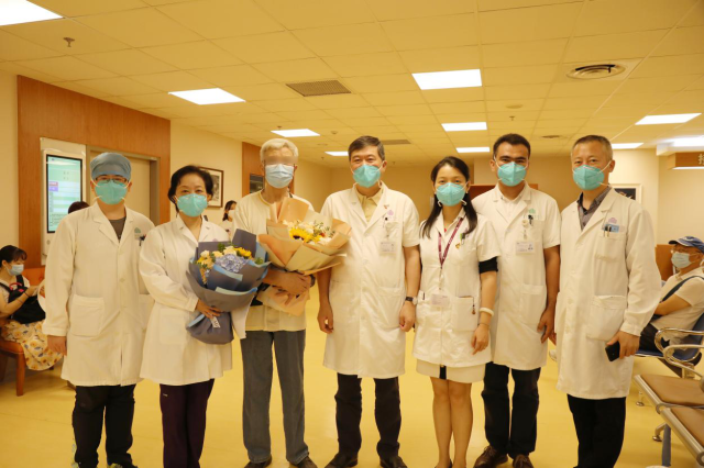 7月,患者等来了一枚与其匹配的肝脏,由董家鸿和卢倩共同主刀,麻醉科主任张欢带队全力保障,6个多小时的手术如约顺利完成,患者转进肝脏ICU监护,张振宇主任医师带队精心守护,生命体征与各项器官功能逐渐稳定。因高龄的关系,患者在围手术期出现了轻微的心率失常,心脏内科接过了患者守护的“接力棒”。就这样,在多学共同协作下,患者在81岁的年头成功迎来了新生,康复出院。