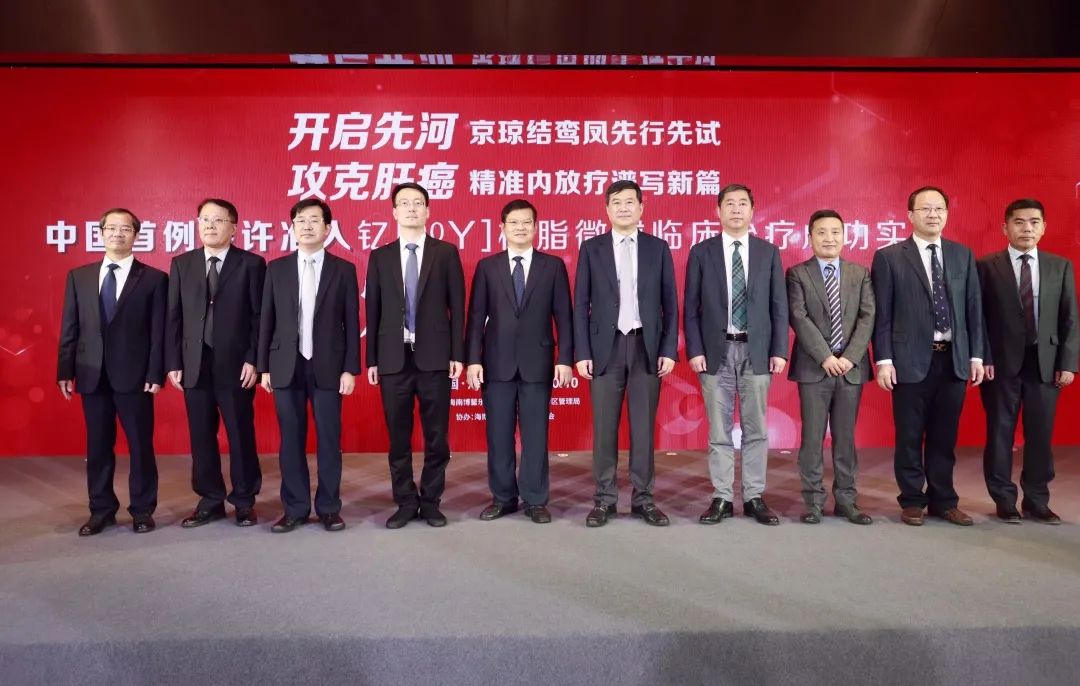 董家鸿介绍到,“这种国际先进的治疗方法适用于大部分不能手术的中晚期肝癌病例,能够高效控制肿瘤,部分病例可获得治愈效果,部分病例还可达到降期作用从而为治愈性手术创造机会。”可以说,钇[90Y]树脂微球是一枚可精准投射、清灭肿瘤的“超级核弹”,将普惠中国最广大的肝癌病患群体,是中国肝癌治疗史上具有里程碑意义的先进技术。肝癌被称为“癌症之王”,中国每年肝癌新发病例达40万例,占全球肝癌新发病例一半以上。多数患者发现时已是中晚期,仅20%-30%的肝癌患者通过手术切除或肝脏移植获得治愈的可能,且5年内复发率仍高达60%-70%,这就是我国肝癌治疗面临的严峻现实。经肝动脉注入栓塞剂和化疗药的介入治疗,作为控制肿瘤的局部治疗方法,在不能手术的中晚期肝癌患者中应用最为广泛。而经肝动脉注入钇[90Y]树脂微球是介入治疗和内放射治疗的黄金组合,形成对肝脏肿瘤的巨大靶向杀灭效应。作为全球最早研发且唯一获得美国食品和药品监督管理局(FDA)正式批准的放射性微球产品,钇[90Y]树脂微球已在全球超过50余个国家和地区累计治疗超过12万人次,其安全性和有效性已经得到充分验证,被美国、欧洲及中国的主流诊疗指南推荐。钇[90Y]树脂微球单用,或者与手术切除、肝脏移植、射频消融、化疗、靶向、免疫等其他治疗方式联用,可为广大肝癌患者带来更为显著的临床获益,成为我国征服肝脏肿瘤的利器。新闻发布会上,北京清华长庚医院肝胆胰外科副主任冯晓彬与肝胆介入科副主任医师张琳以及海南省肿瘤医院介入科主任牛惠敏,共同向到场领导、嘉宾及媒体介绍了首例患者手术治疗情况。“患者是一位34岁男性病人,巨大肝癌无法常规手术切除。经多学科专家多轮研讨,一致认定患者进行钇[90Y]树脂微球介入放疗是最佳选择。 ”“手术中经微导管向肝脏肿瘤的靶血管内精准注入钇[90Y]树脂微球,不到一个小时就顺利完成治疗过程,病人生命体征平稳,无任何不良反应。”