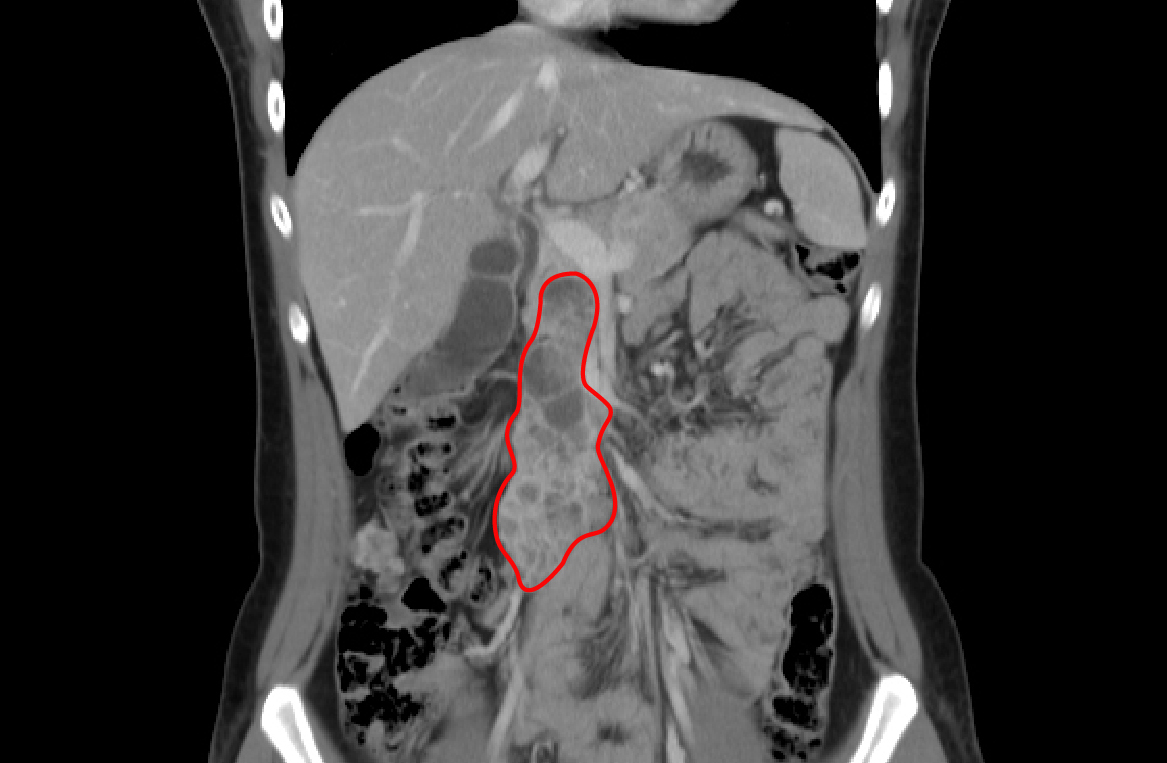 北京清华长庚医院10月20日电(通讯员 韩冬野)“没有胃口,吃不下饭。”这是20岁的梓婷(化名)到北京清华长庚医院就诊时自诉的唯一症状,而当肝胆胰外科主任医师石军拿起她的影像片子,却吃了一惊。“肿瘤位于胰腺头部,向上沿着肝十二指肠韧带直达肝门、向下蔓延到小肠/结肠系膜根部,大小不等的囊实性肿块呈串珠样融合成块,而且网膜也有散在肿块。”这也正是梓婷在当地无法手术治疗的原因。