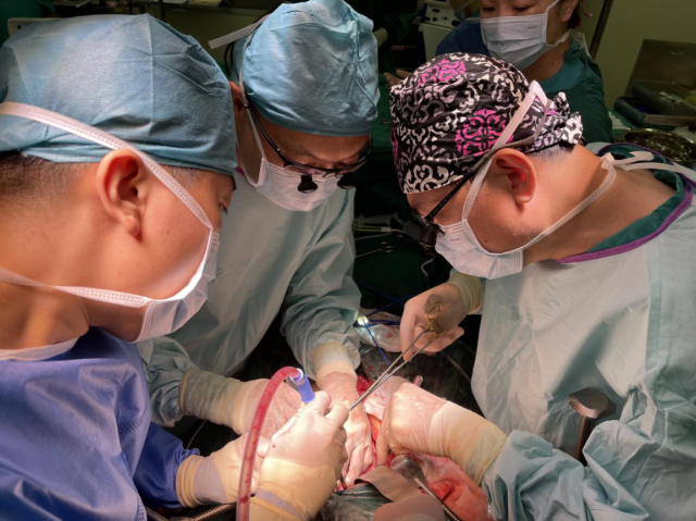 图为董家鸿带领医师在冰浴内完成移植血管重建