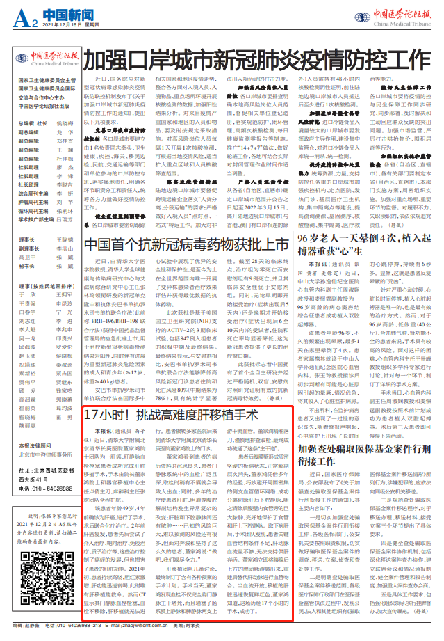 新闻链接:《中国医学论坛报》2021-12-16 A2版