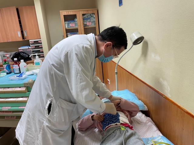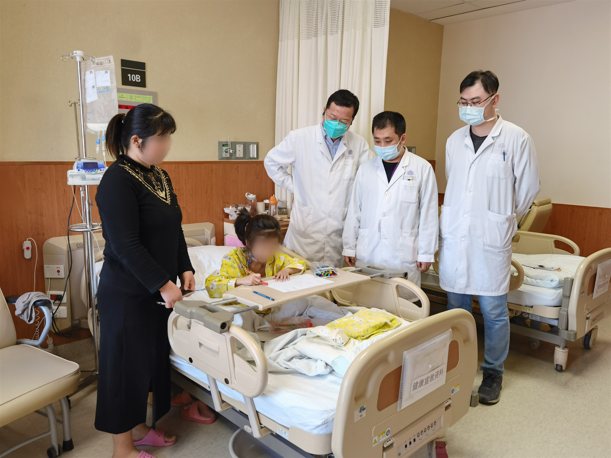 项灿宏(左三)查房时遇到正在画画的琳琳