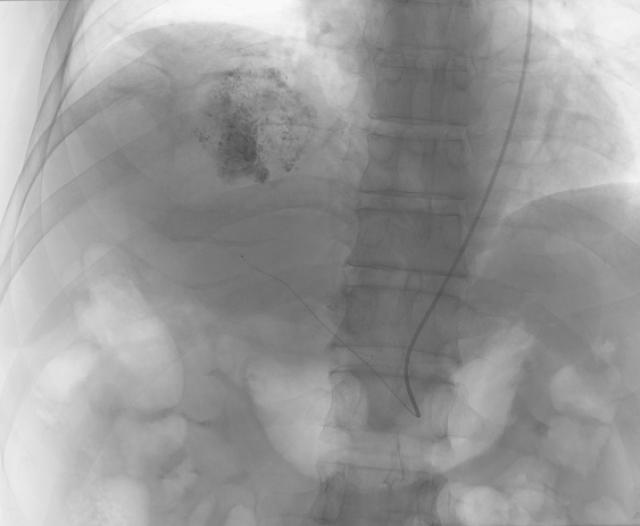 经左侧桡动脉入路TACE术中透视图
