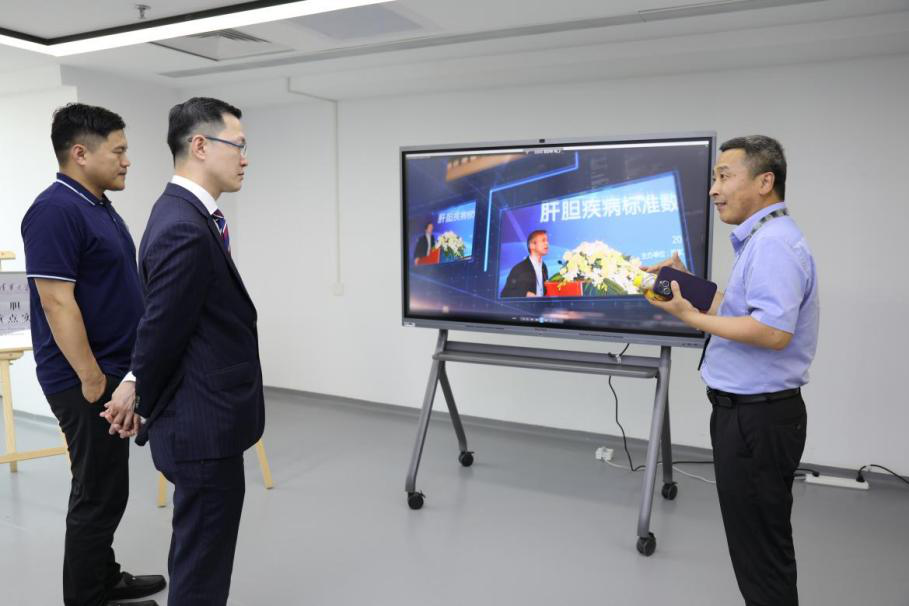 王韫芳、冯晓彬详细介绍了肝胆研究实验室的功能和规划,以及国家肝胆标准数据库和钇90治疗技术的发展。肝胆胰外科医师金烁介绍了AI精准外科手术规划系统现场操作。