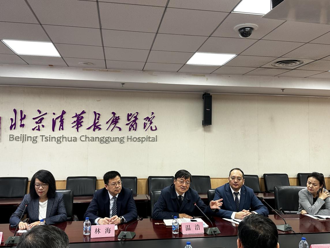 北京清华长庚医院4月15日电 (通讯员 徐端晨)2024年4月12日,法国国家外科学院外籍院士、新疆医科大学第一附属医院消化血管外科中心名誉主任、省部共建中亚高发病成因与防治国家重点实验室主任、新疆医院协会会长温浩教授,新疆医科大学第一附属医院副院长吐尔干艾力•阿吉,新疆医科大学第一附属医院器官移植中心、消化血管外科中心、包虫病防诊治中心邵英梅主任,新医大一附院医务部主任、循证医学教研室主任兼胰腺外科副主任林海,新疆器官移植研究所秘书许新华一行5人来京考访学习北京清华长庚医院医教研管理,并开展二院合作工作交流会。
