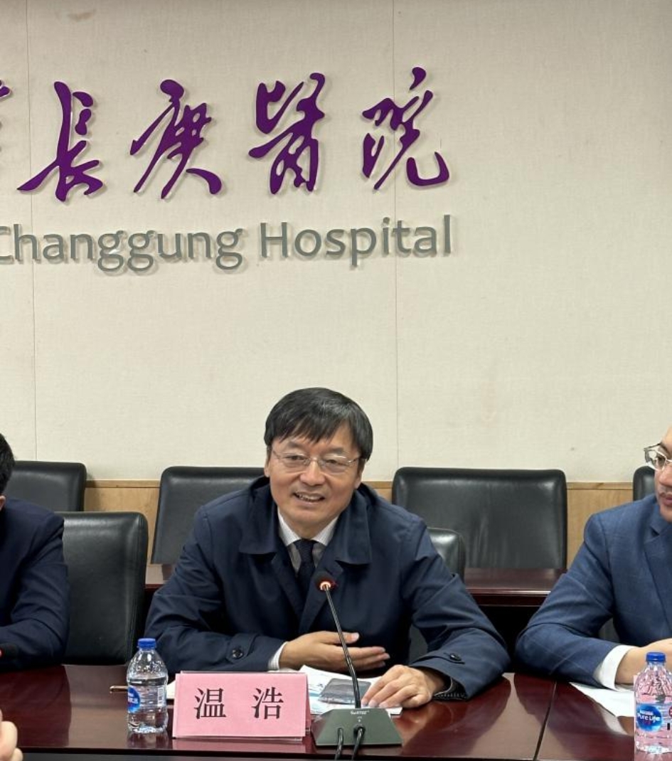 温浩教授首先简要新疆国际医院的建设是具有国家战略意义的项目,旨在服务“一带一路”倡议,为中亚地区提供高质量的医疗服务,特别是肝胆胰和肝移植领域的学科群建设。有助于提升医院的医疗水平,打造丝绸之路健康品牌,吸引更多中亚邻国患者前来就医体验;不仅能推动中亚核心区医疗事业的发展,还能促进区域间的经济文化交流。本次来院参访,希望能够学到北京清华长庚医院关于医务和运营管理方面的有效经验,通过天池计划和配套国家重点实验室项目引入北京清华长庚医院专家团队,加强两院交流合作,提升医疗管理,助力新疆医科大学一附院在医务和运营管理、学科建设,协同创新与临床转化等方面取得更大的进步。
