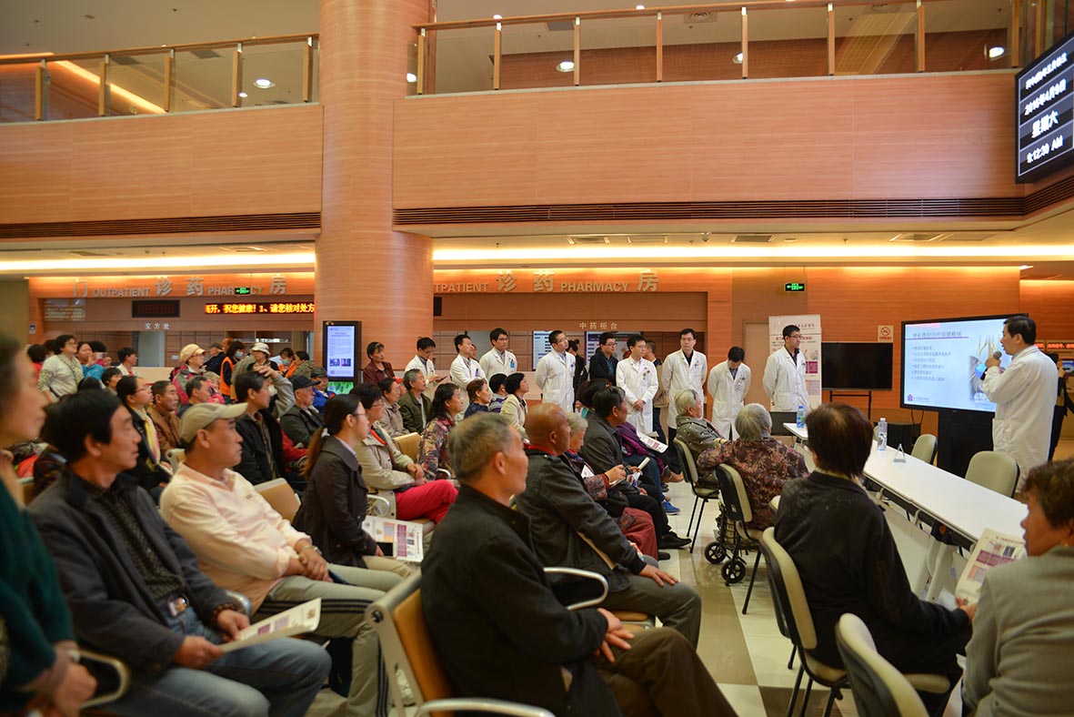 在精准治疗理念逐渐普及推广之际,骨科也针对天通苑地区居民常见病多发病开展针对性的精准宣教和服务。肖嵩华主任、潘勇卫主任、赵喆主治医师分别主讲了“脊柱微创技术治疗颈腰椎病”;“骨性关节炎的诊断与阶梯治疗”;“老年性骨质疏松及骨折的防疗”三堂精彩讲座。