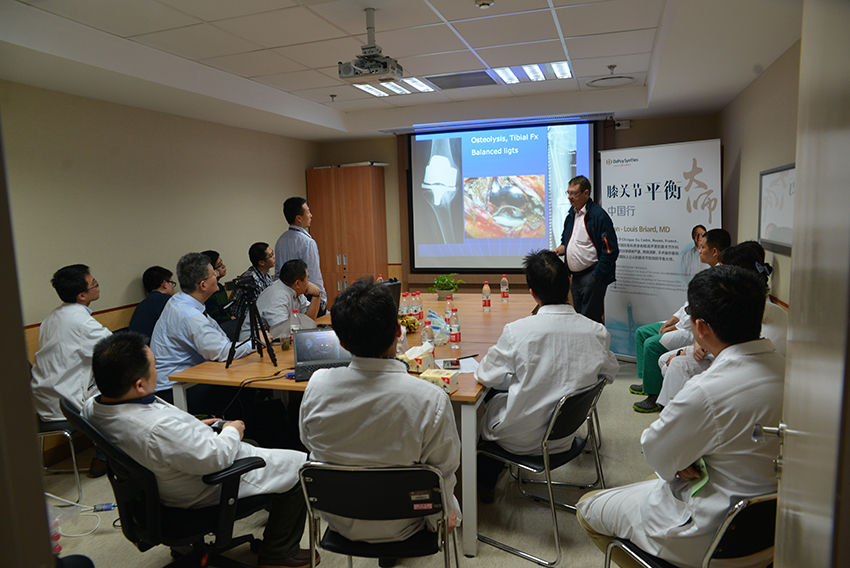 Briard教授以《膝关节置换术中及术后不稳定的评估和处理》及《外翻膝临近关节的病理改变及置换术中外侧松解的关键技术》为主题进行了专题讲座。会场气氛热烈、内容精彩,在座的骨科同仁均表示受益匪浅。同时,Briard教授对我院骨科在人工置换技术方面高速、成熟发展表示赞赏,表示希望下次有机会再来我院进行学术交流。此次世界关节大师来访对我院开展对外交流、国际合作以及促进我院关节外科发展起到了良好的推动作用,促进了我院临床及科研方面与国际学术的融合,提高我院膝关节置换等外科技术水平,同时也增进了我院与法国外科专家的友谊及相互间的学术交流,对于我科膝关节置换技术与国际接轨具有重要的意义。