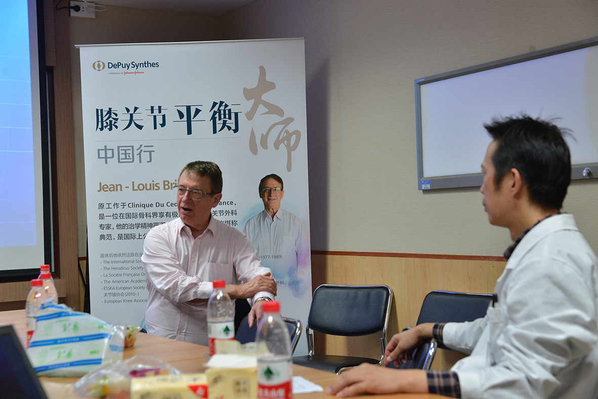清华长庚医院10月19日电(通讯员 孙长鲛)10月19日,即将迎来两周年院庆,应我院骨科关节中心主任蔡谞教授之邀,法国著名关节外科专家Jean—Louis Briard教授莅临我院进行学术交流访问,并进行膝关节方面的理论研讨。我院骨科的专家及同仁参加了此次学术活动,骨科住院总医师孙长鲛担任同声翻译。