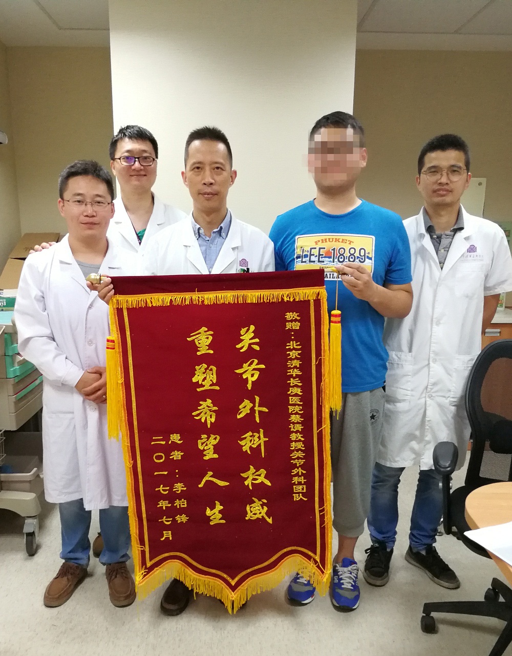 清华长庚医院7月17日电(骨科 孙长鲛)近日,北京清华长庚医院骨科副主任蔡谞收到了患者送来的锦旗。患者年仅24岁,在前年和去年,分别进行了左右膝关节置换术,“现在我和正常人完全一样了”患者说。为何他如此年轻,就已关节置换?