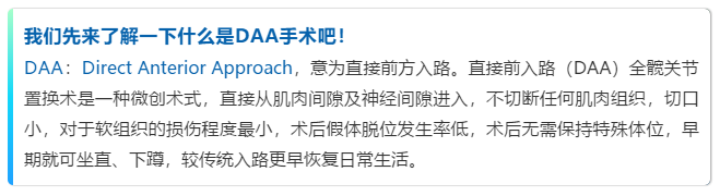 在选择手术入路方面,目前最常用的为后外侧入路,但该入路切口长,需切断外旋肌群,术后为防止髋关节脱位,需要保持特定体位,早期无法坐直、下蹲、穿袜子等操作,严重影响早期的日常生活。