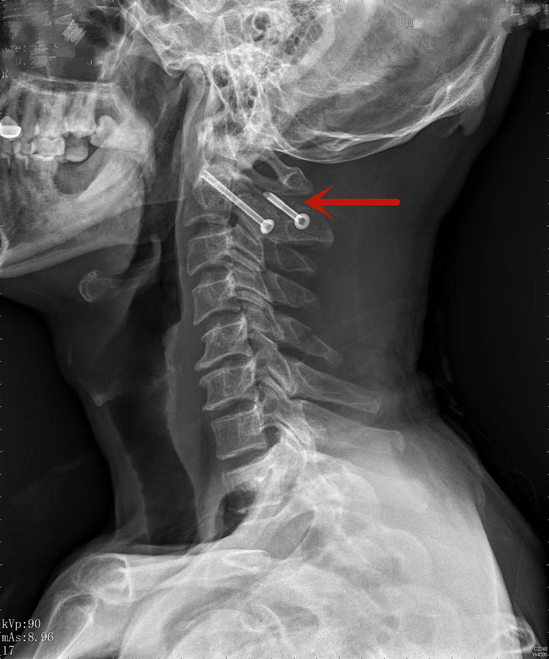 患者术后复查的影像资料显示螺钉精准地植入骨折块中