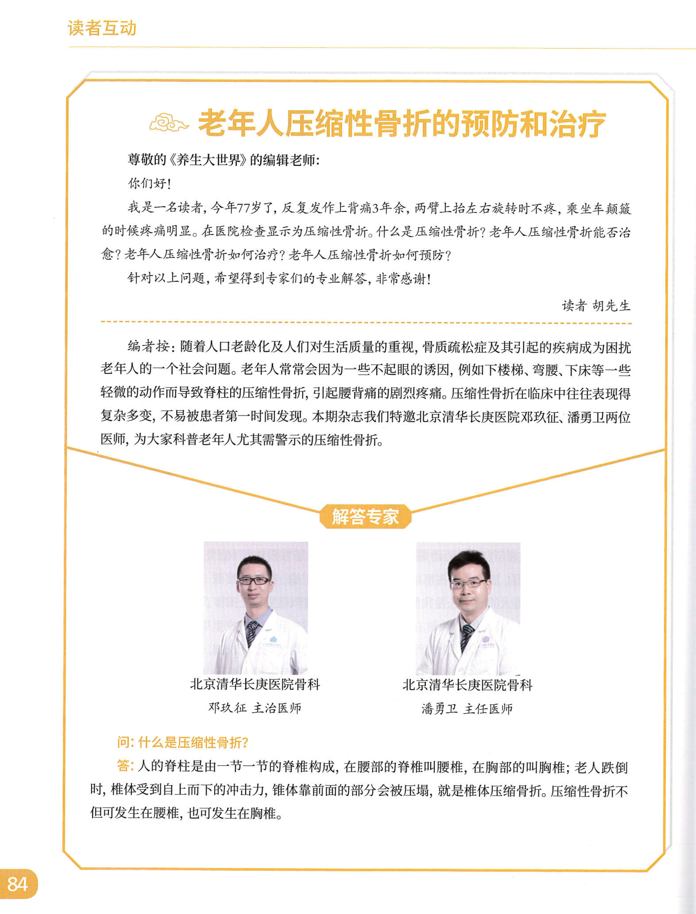 《养生大世界》刊登骨科科普稿件:老年人压缩性骨折的预防和治疗