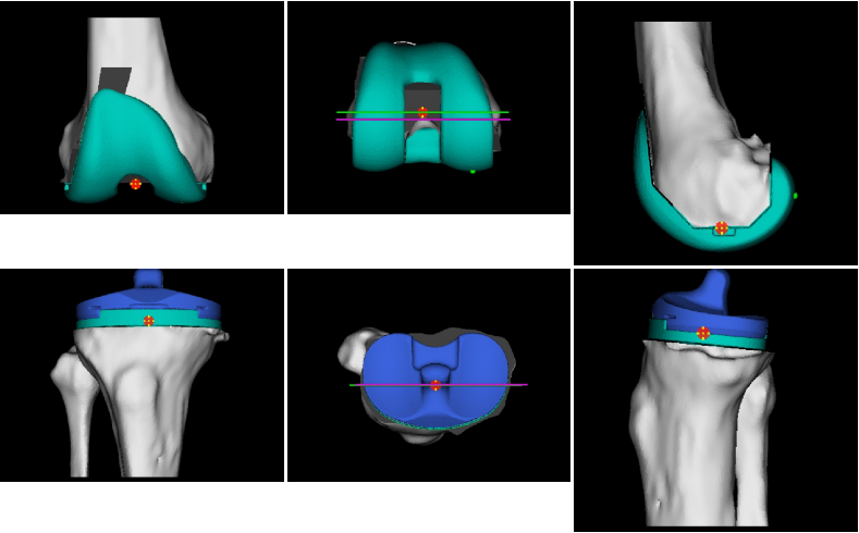 术中,蔡谞控制机械手臂,根据计算机导航指令到达股骨远端截骨区域,通过调整截骨方向,精准完成股骨远端前切(前髁截骨)、后切(后髁截骨)、前斜截骨和后斜截骨及胫骨近端截骨。根据计算机术前计算的手术数据,蔡谞顺利为患者完成膝关节假体部件安装。