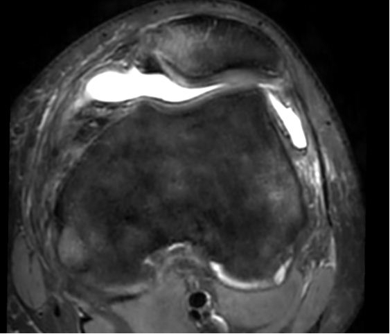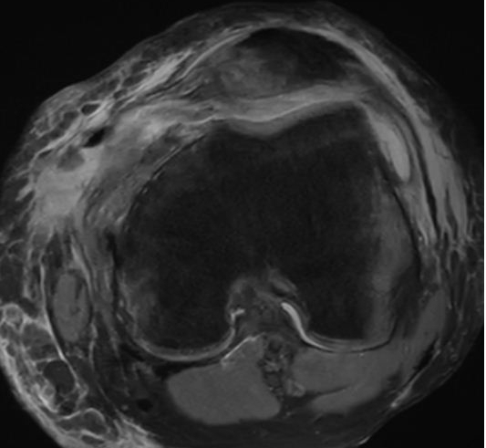 内侧髌骨韧带关节镜下重建后,术中在关节镜下观察,髌骨已经复位良好,术后MRI影像学表现如下: