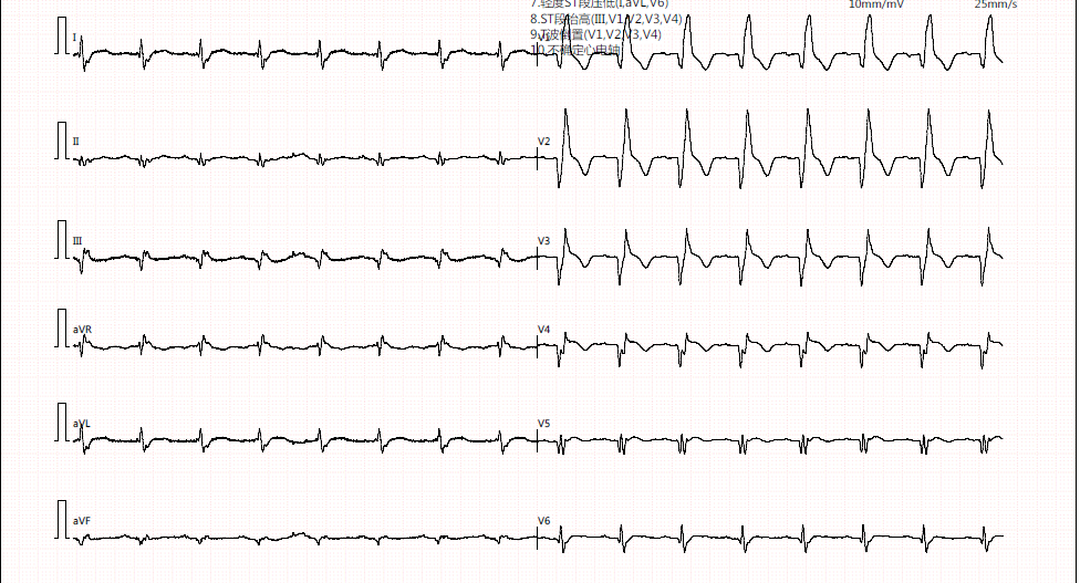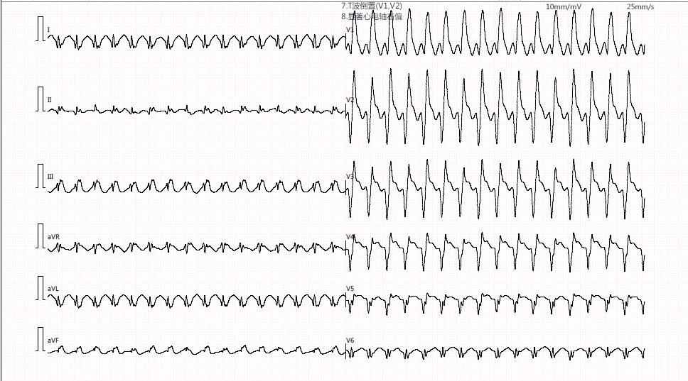 60岁的患者这天独自一人在家,晚上睡觉前突然感到心跳得厉害,伴有胸痛,被好心的邻居送来医院。急诊检伤护士王学玲发现患者心率190次/分(正常60-100次/分),即刻转到抢救室,完善心电图检查。接诊医师马士程判断是室上性心动过速,当时患者血压为120/70mmHg,比他平时的血压稍低,但在正常范围之内,考虑为血流动力学稳定的室上性心动过速。为避免患者病情加重出现昏厥、休克等症状,马上进行心电监护,同时做好心律转复准备。在此过程中,患者自诉有过陈旧性心肌梗塞,冠状动脉三支病变。