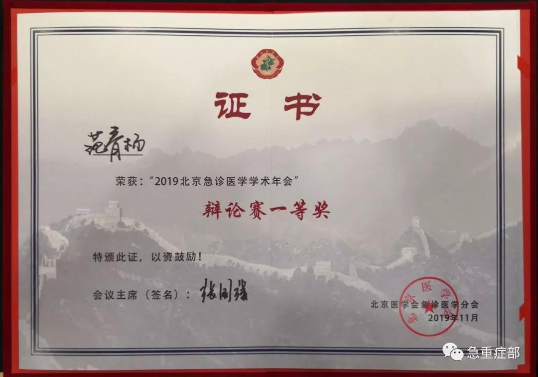 范春杨、何建强医师组队参加辩论赛,辩题为“叙事医学在急诊工作利与弊”,两人表现优异,从各个角度阐述了叙事医学对急诊工作有利之处,展现了急诊科医师的人文素养,分别获得辩论赛一等奖和优秀奖。