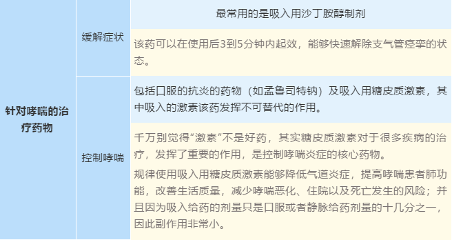 目前的哮喘药物多为吸入的复方制剂,即包括了上述提到的舒张支气管的药物及控制哮喘的炎症的药物,比如布地奈德福莫特罗、沙美特罗氟替卡松。