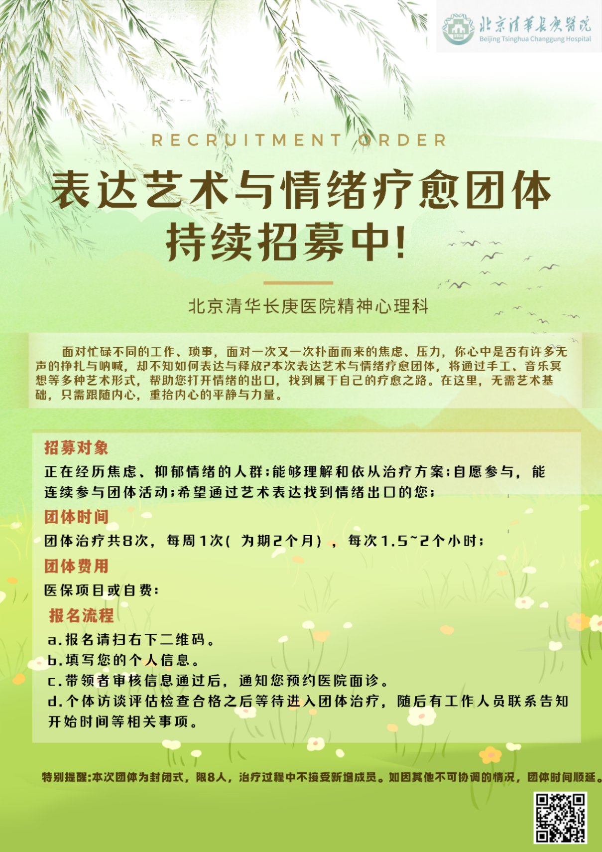 如果你愿意尝试一种新的方式认识自己、疏解情绪,那么你就会发现在安全、包容、不评判的空间里,艺术成为了你心灵的翻译官,创作照亮了你内在的风景,长久以来的情绪正在慢慢被解开。下一期表达性艺术疗愈团体即将开始,名额有限,扫码立即预约咨询和报名!