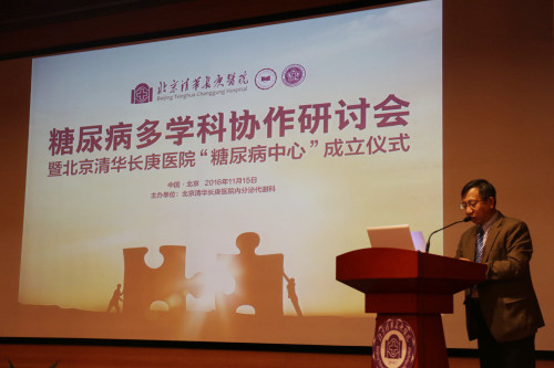北京清华长庚医院11月15日电(通讯员 李彩宏)2016年11月15日,北京清华长庚医院内分泌代谢科举办了糖尿病多学科协作研讨会,作为医院两周年院庆学术活动,同时,北京清华长庚医院“糖尿病中心”正式宣布成立。研讨会邀请了美国路易斯安那州立大学胡刚教授、阜外心血管医院内分泌和心血管病中心李光伟主任、北京清华长庚医院眼科胡运韬主任、血管外科吴巍巍主任、营养科杨勤兵主任等多学科专家出席会议,就糖尿病多学科协作议题以大会报告、专题演讲、疑难病例多学科合作查房等形式展开学术讨论。