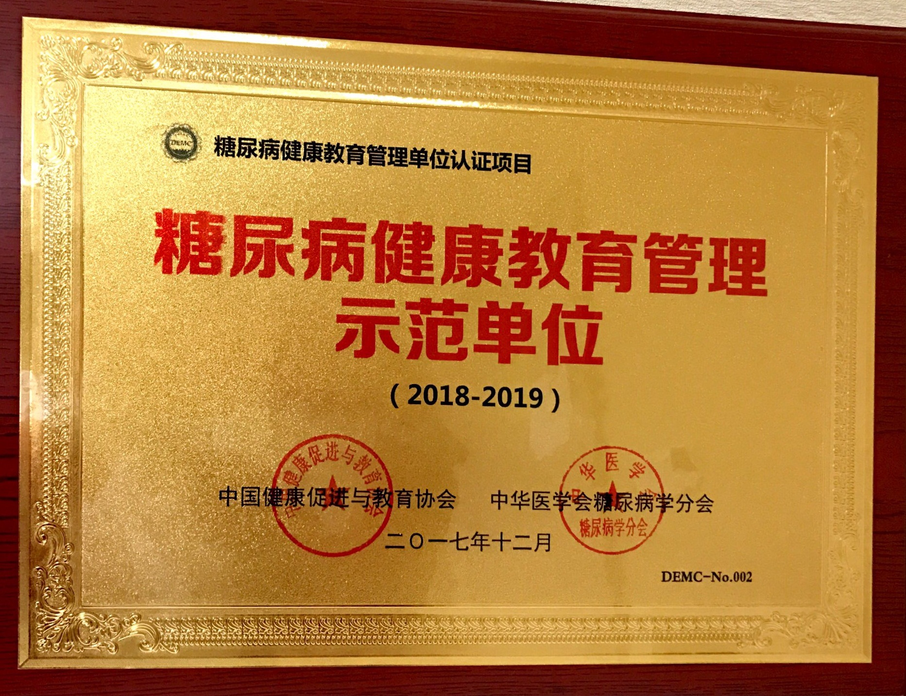 北京清华长庚医院2月11日电(通讯员 李彩宏)日前,北京清华长庚医院被授予2018-2019年全国“糖尿病健康教育管理示范单位”荣誉称号,意味着我院糖尿病健康教育管理工作得到了学会评审专家、业界同行的充分认可,也标志着我院糖尿病教育管理的发展迈向了新的台阶。