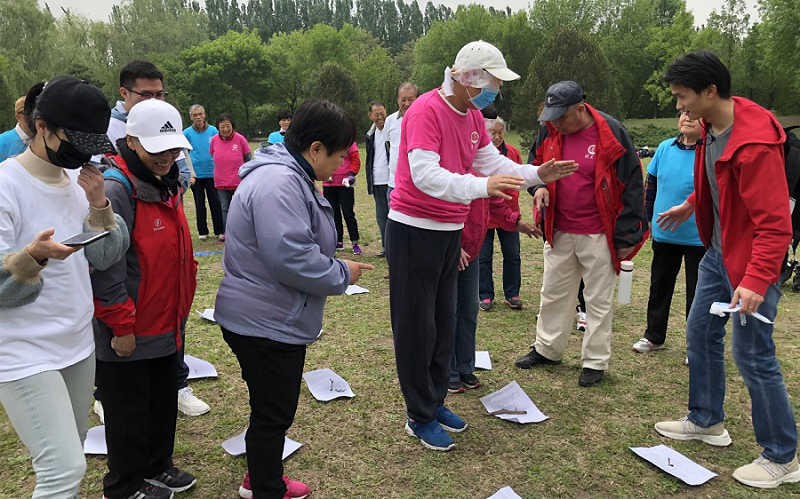 第二项是“踩地雷”:每队派出2队糖友参加,一位糖友蒙住双眼,另一位作为他/她的眼睛,指引他/她避开障碍,到达终点。这个项目营造了一个宽松、良好的交流氛围,通过糖友之间的相互合作培养了团队合作意识,同时也让大家能更好的融入这个糖友会大家庭。