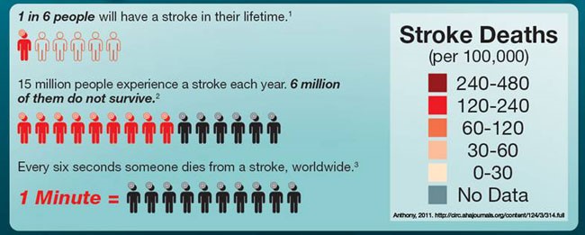 每6个人中有一个人一生中将会发生一次卒中,每年有新发脑卒中患者人数1500万,600万人死于脑卒中。世界范围内,每6秒钟就会有一人死于脑卒中。“听说隔壁老李,单位老王得脑血栓住院了,就连老家的侄子那么年轻听说现在也不能外出打工了……”,卒中就在我们身边!