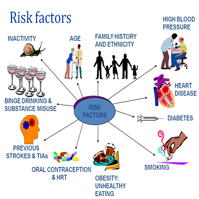 脑卒中的发生与某些危险因素的存在相关:主要包括(1)疾病相关危险因素:如既往脑卒中病史;既往短暂性脑缺血发作病史;高胆固醇血症;高血压;心脏病;房颤;合并颈动脉或颅内动脉狭窄。(2)生活方式相关危险因素:缺乏运动;口服避孕药;吸烟;超重/肥胖;过量饮酒;(3)其它还包括年龄、性别、种族等。