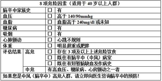 就像普通的感冒老人和小孩容易发生一样,卒中也有一定的易感人群,所谓的卒中高危人群,那么如何判断你是不是卒中高危人群哪?下面的小卡片或许对我们有一些帮助。