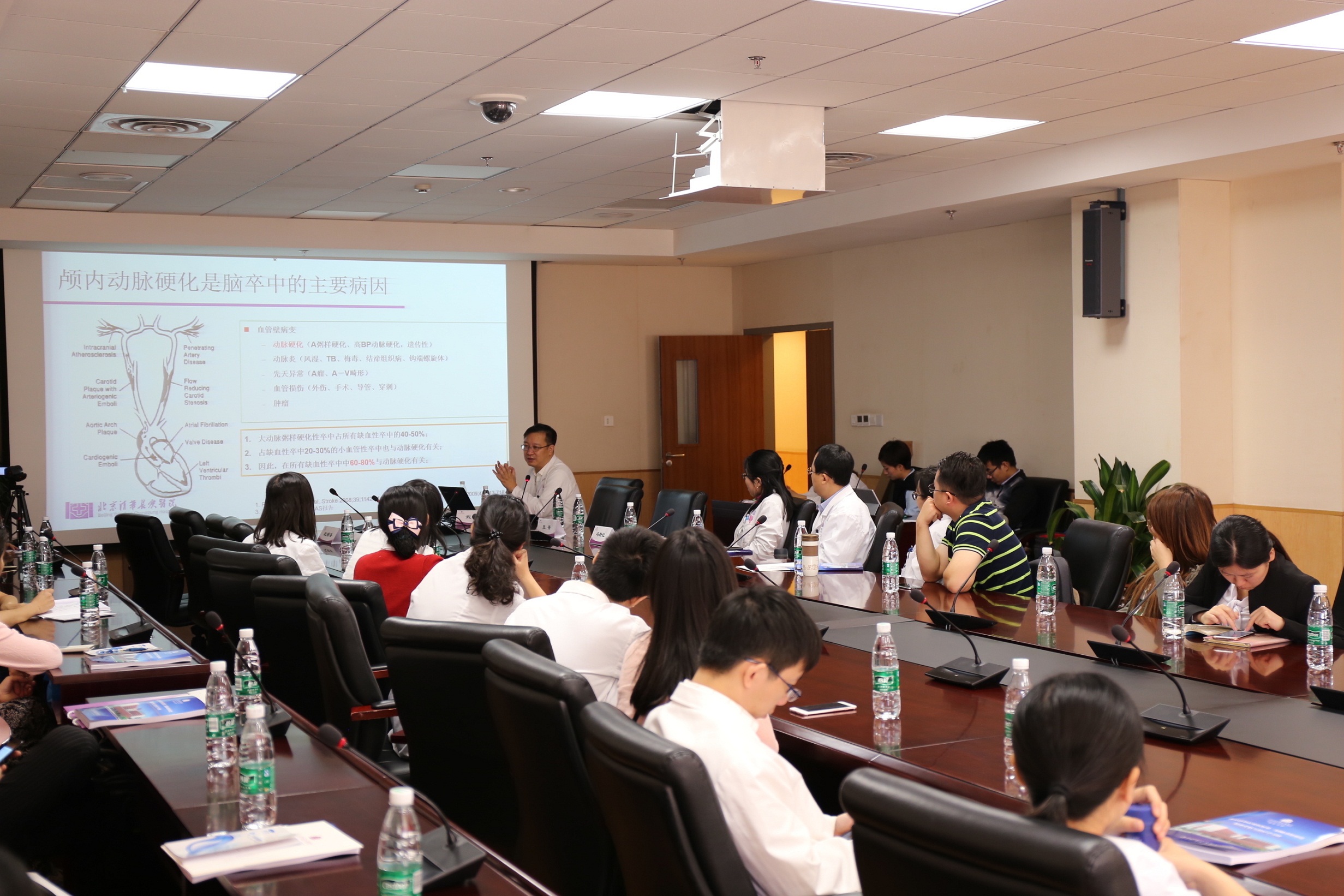 学习班首先由我院院长助理、神经中心主任及神经内科主任武剑教授致辞,武剑主任向学员介绍我院文化,科室文化及学习班文化,随后以《颅内动脉粥样硬化的病因和精准诊疗模式》为题正式拉开学习班帷幕,深入浅出和生动诙谐的讲解,让学员开怀一笑同时,深深记住了何为脑血管病的“精准诊疗模式”。