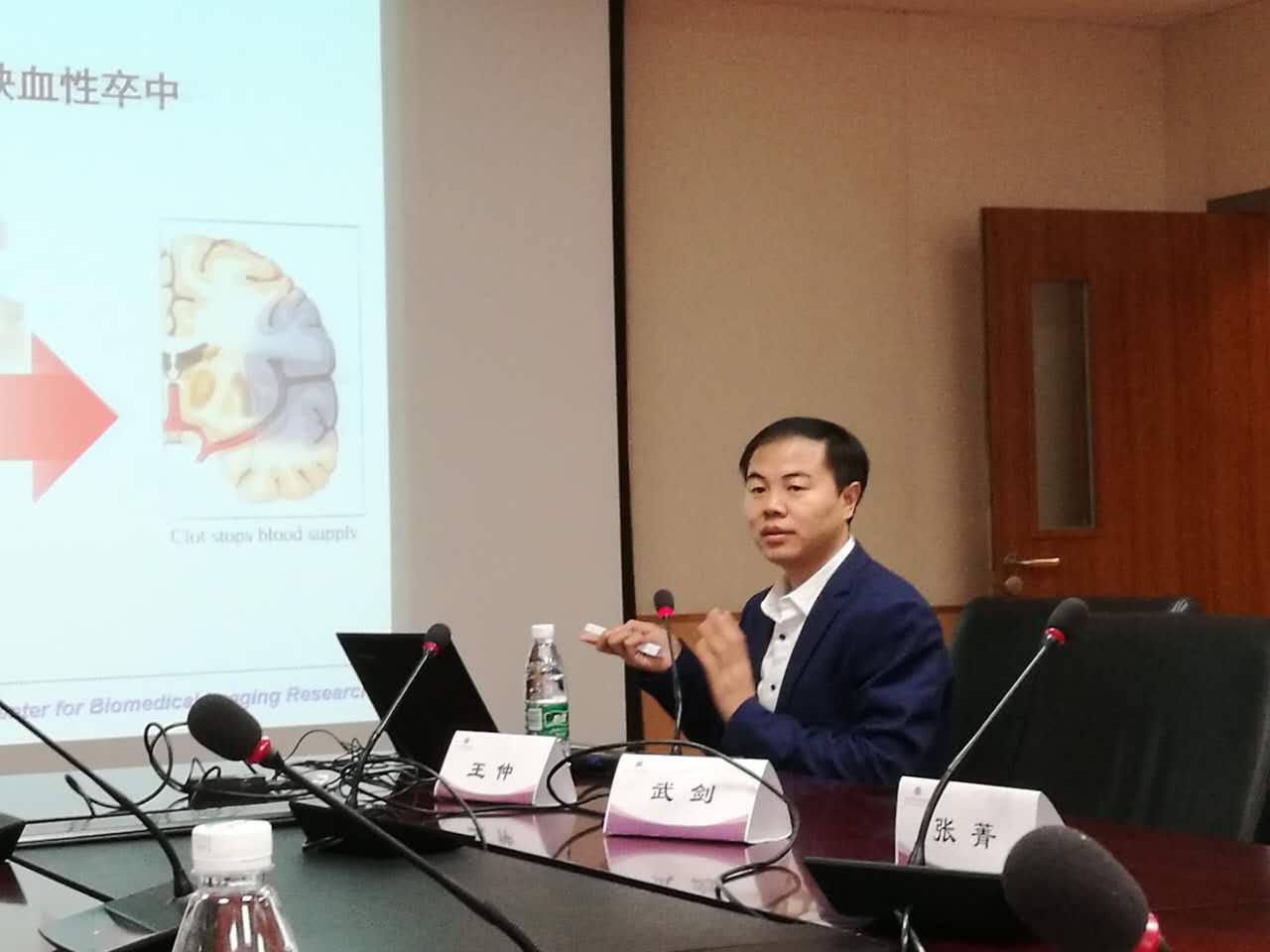 武剑主任致开幕词并开始讲授《颅内动脉粥样硬化的病因和精准诊疗模式》