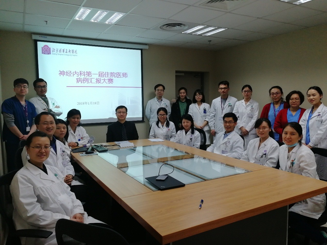 北京清华长庚医院1月22日电(神经内科 侯多朵)1月18日,清华大学附属北京清华长庚医院神经内科举行第一届住院医师病例汇报大赛,共有6位神经内科R3及以上级别的住院医师参加。比赛旨在进一步提升神经内科医疗质量及住院医师临床诊断思维和病例书写水平,更好地为病人提供优质医疗服务。北京清华长庚医院院长助理、神经中心主任、神经内科主任武剑担任大赛主席及评委。担任评委的还有神经内科7位Attending医师:冯新红、张菁、王梅、付伟、黄丽、张小峰、李珺。冯新红副主任医师主持大赛。