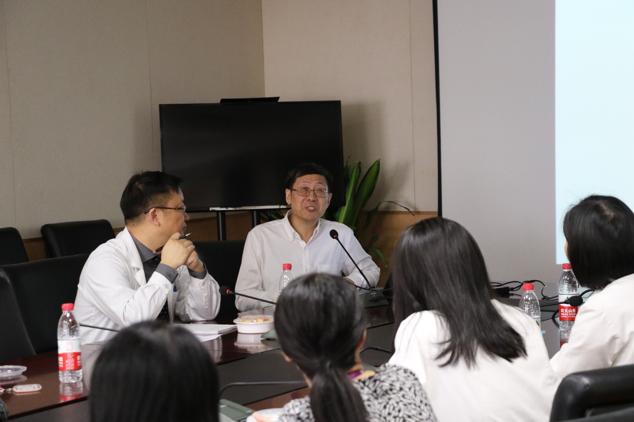会议上,武剑主任首先对我院目前发展总体情况进行介绍,接着又对目前神经中心及神经内科的构架,平台搭建,亚专业发展现状及人才培养,科研及教学等做了概要汇报。最后对科室未来规划做了展望。袁云教授针对科室发展状况,结合肌肉病的诊断和治疗,深入浅出,结合实例,以幽默诙谐的方式进行介绍,并结合我科实际状况提出具体发展建议。如搭建神经免疫实验室平台,发展一技之长,把某一个方向做大做强,并实现对患者的动态管理;同时注重青年医生的基本理论和实践技能培养,为长远发展做出人才储备;与多学科交流合作,开展团队协作,这也印证了我科目前建立臂丛诊疗中心等多个MDT的正确性。最后,袁云与科室成员进行沟通交流。通过本次会议,拓展了青年医生的临床思路,加强了我科与同行的交流,其关于亚专业发展的建议及教学的经验也为我科下一步的发展提供了指导性建议。今后我科将持续定期举行学术交流会,引进国内外知名专家,充分交流学习,为青年医师搭建更高更广阔的学习平台。