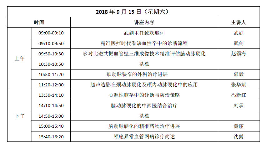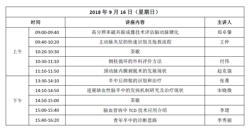 清华大学附属北京清华长庚医院神经内科主办的第三届脑动脉粥样硬化精准评估与治疗学习班将于2018年9月15日-2018年9月16日与北京清华长庚医院如期举办,会议邀请北京清华长庚医院神经内科、神经外科、血管外科、急重症部、放射科、超声科等众多专家加盟,同时邀请到清华大学生物医学影像研究中心专家授课,内容涵盖多个领域,侧重于脑动脉粥样硬化的评估及内外科治疗进展,届时将给大家带来全新的认识,欢迎大家与会参与!