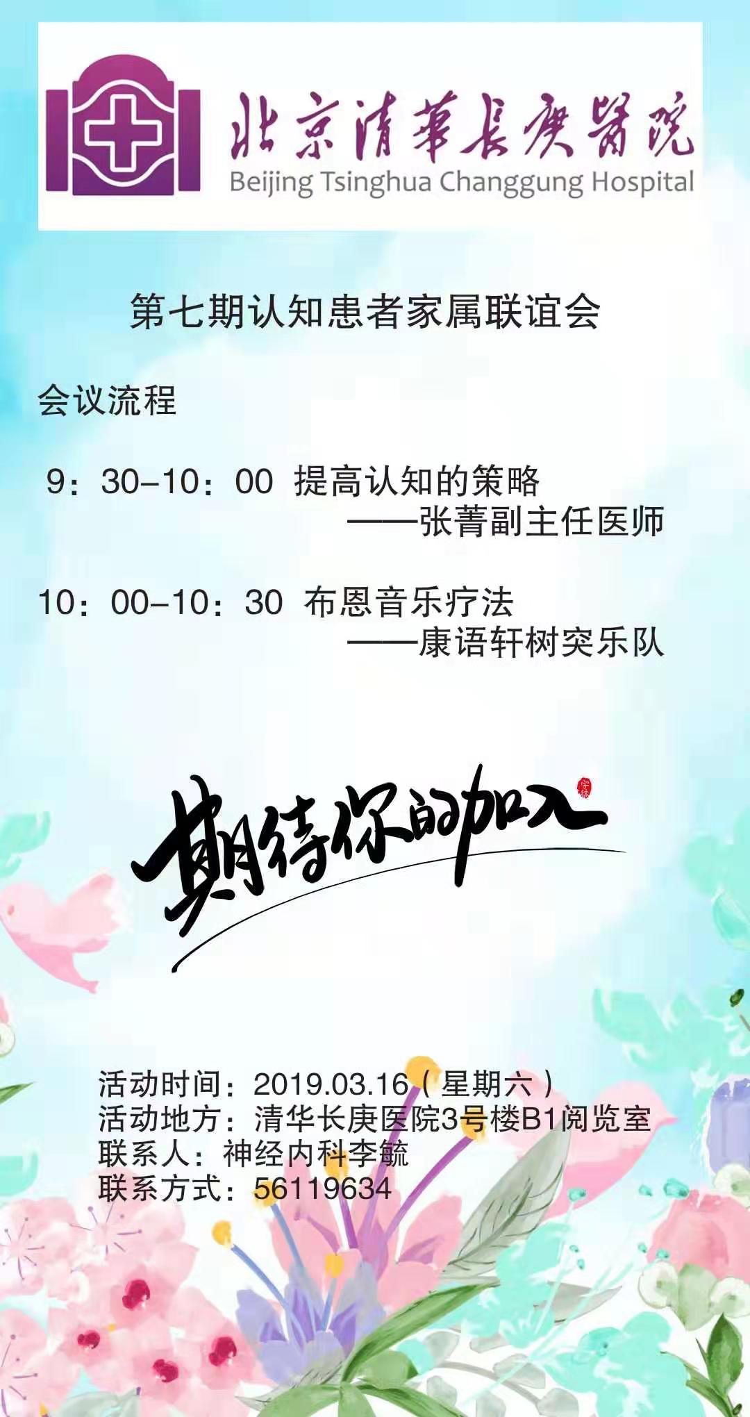 2019年的认知家属联谊会要开始啦!这是我们的第七期联谊会,跟往期一样,我们继续以"共同学习,共同进步,让更多的人了解阿尔茨海默症"为主旨,更好的为大家服务,也希望能得到大家更多的意见。在过去一年认知家属联谊会收到了参与者的好评,总会有人问我们什么时候再开展,在这阳光明媚,春暖花开,春意盎然的三月,我们开始了新的一年新的旅程,我们怀揣着一颗真诚的心邀请您的前来,在这里我们有专家带来的知识小课堂,有家属们朋友们交流经验,还有瑞典的布恩音乐疗法。让我们欢聚一堂,载歌载舞,在了解了知识的同时也是自己心情愉悦,交到更多的朋友。欢迎各位老师以及病房内感兴趣的患者前来参加!