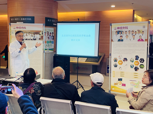 北京清华长庚医院4月10日电(神经内科 李珺)2019年4月10日,在北京清华长庚医院一层门诊区,神经中心举办的第22届世界帕金森病日大型义诊活动拉开帷幕。此次义诊活动由神经外科专家王劲副院长致开幕词,神经内科赵蕾副主任医师及神经外科董生医师展开一系列科普教学活动,随后由神经内外科医师对前来咨询群众进行健康咨询。