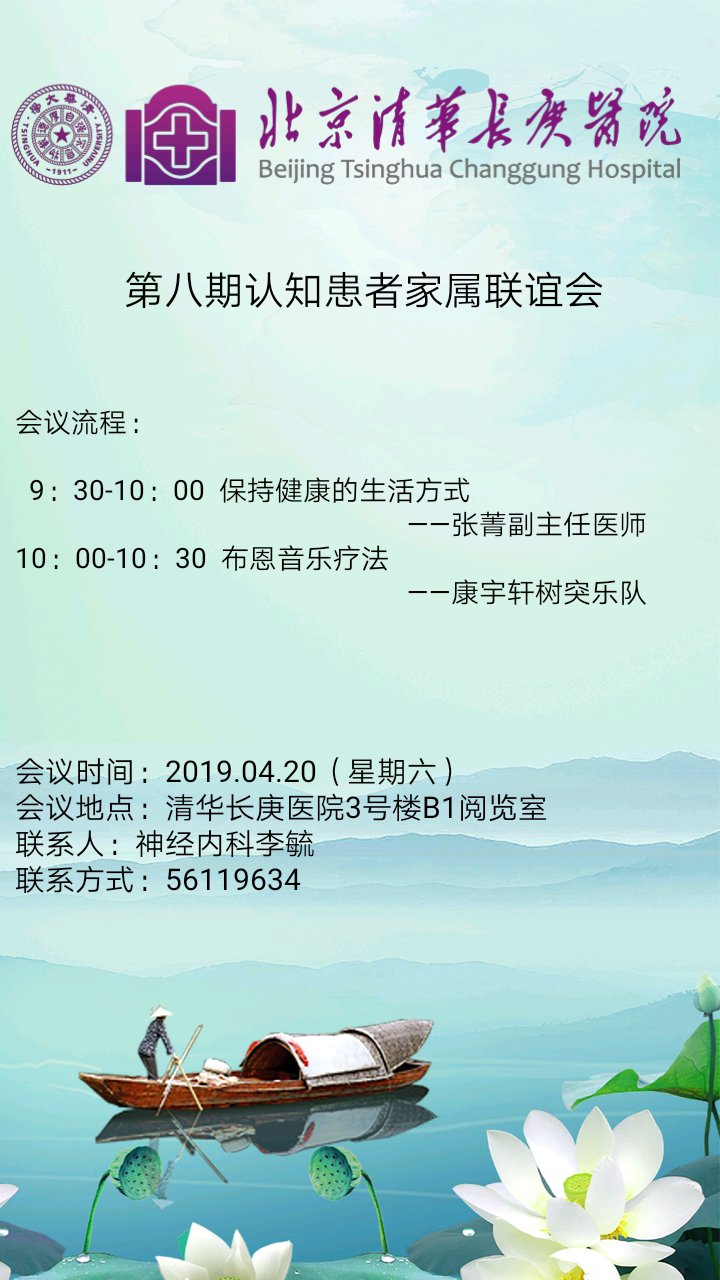 认知症是一种脑部疾病,目前我国已经有约1000万人患有认知症,其中很多患者是居家养老,由子女,配偶和保姆担当照顾重任。为此,清华长庚医院神经内科举行了认知家属联谊会,第八期认知患者家属联谊会于本周六(20日)上午举行,家属联谊会对照顾者进行讲座培训的同时也增加大家的社会支持和情感支持,欢迎大家参加!