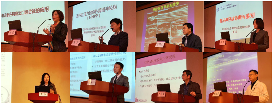 随后北京协和医院管宇宙教授讲述了如何从肌电图诊断臂丛神经病。中国医大盛京医院的潘晓丽教授讲授了新生儿臂丛损伤相关诊治,并介绍了其团队数年来积累的丰富经验和累累硕果。清华大学医学院生物医学影像研究中心的特别研究员郭华教授从技术的角度展示了臂丛的磁共振影像检查方法。山东大学齐鲁医院的张冬主治医师全面细致地分享了非创伤性臂丛神经损伤的电生理诊断。来自河北医科大学第三医院的于邵斌主任带来诸多临床案例,生动形象地讲述了卡压性周围神经病变的电诊断。我院神经内科冯新红教授,也即本次论坛主办者,压轴出场,将特发性臂丛神经炎的临床亚型和电生理诊断娓娓道来。此外,我院李秀丽主治医师及张颖博住院医师带来了两例既往收治的精彩病例,同大家一起分享探讨。