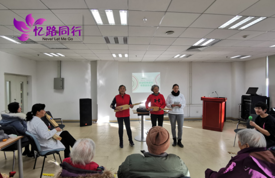 协调练习过后,来自康语轩的“海马记忆组合”为老人们带来了一首耳熟能详的歌曲《茉莉花》,老人们开心得跟着唱起来。并且乐队成员向大家介绍了自己的名字和生活经历,非常巧的是今天我们参加活动的四位老人都是来自于北京各行各业的高校教师,随后老人们也按顺序介绍了自己的名字和生活经历。