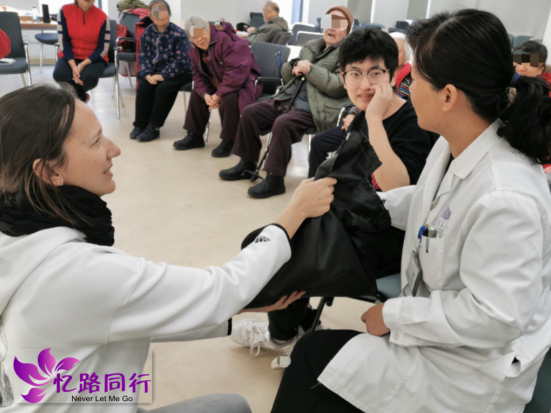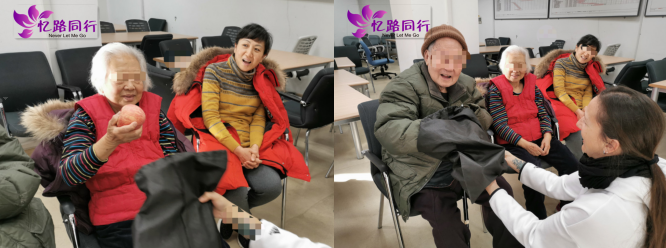 在上一期布恩音乐疗法中,来自瑞典的社工何安瑞跟大家约定今天会带来更有意思的游戏。今天她的袋子里放了更多稀奇古怪的物品让大家来猜。“隔袋触物”游戏主要是来锻炼老人们的感觉和知觉,这次跟上期不同的是老人们把不仅要才出手中摸出了什么,还要用语言描述出这个物品的特征。中国结、松塔、圆珠笔等物品都被老人们一一猜了出来。最后游戏结束,何安瑞跟老人们约定,下次活动还会带给大家更精彩的游戏。