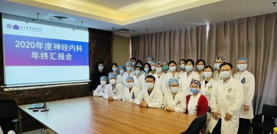 在各位Attending医师及住院医师的汇报中,过去一年的点滴如电影般历历在目,既有艰难险阻,也有柳暗花明。武剑主任总结说:“今天的年终汇报会我们忆苦思甜,共同经历了疫情的考验,相信大家在未来的工作中能够更加拼搏向前,希望我们在新的一年里继续并肩前行。”会后全体神经内科人员合影留念。