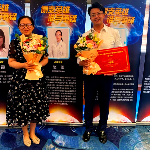 我科王也主治医师压轴出场,以《文通三略执寸铁,武解六韬破恶风》为题,分享了一例血管成形术联合机械取栓术桥接治疗大脑中动脉闭塞的高难度成功病例,生动讲述了神经介入团队在分秒必争的绿道诊疗中冷静果敢的决策过程,指导教师赵蕾副主任医师作精彩点评。最终,王也医师以科学严谨的诊疗思维、有证可循的诊疗流程以及妙语连珠的演讲技巧获得评委会专家的高度好评,并获得大赛一等奖,成功晋级全国总决赛。