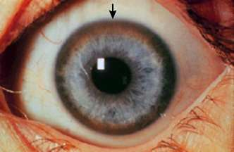 4.眼部症状:铜沉积于角膜后弹力层时可以形成一圈暗棕色环,称为“K-F环”,是该病的特征性表现。K-F环可见于90%以上的有神经系统受累的WD患者,所以它的出现也可以反映出铜在中枢神经系统的蓄积程度。
