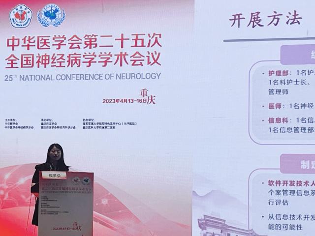 作为后疫情时代的首次全国性学术大会,此次会议盛况空前,大会采用线上和线下相结合的方式,来自全国的神经病学同行线下注册人数高达1.4万人,神经内科武剑主任也率清华长庚团队参加了此次盛会,并在多个主题进行了大会报告。围绕脑血管病防治话题,武剑主任做了“智慧医疗技术在卒中防治中的应用前景”主题报告,介绍了智慧医疗技术在社区高危人群筛查,卒中急性期救治及后期康复及二级预防管理中的应用,并结合我科前期工作基础,重点分享了我们的卒中智慧筛查管理系统,及智慧医疗在清华社区管理工作的经验和体会,相关内容也吸引了全国同行的广泛兴趣。冯新红副主任围绕我科特色之一神经电生理专业,从临床、神经电生理、影像等多个角度剖析了我院收治的腰骶神经根/丛的病例,展示了我科在疑难杂病领域的诊疗水平,也在会场引起了热烈的讨论。宋晓微医师围绕清晨血压高峰与高分辨磁共振所示的颅内动脉粥样硬化斑块特征进行了深入的分析,展示了我科在神经血管影像专业的特色。侯多朵个案管理师在护理分会场分享了个案管理系统在急性缺血性脑卒中静脉溶栓患者中的构建及应用相关经验,并与现场参会同行进行了深入的交流和讨论。除大会发言外,还有来自科室医师、英才博士后及研究生等多个壁报。通过此次大会,展现了我院神经内科在各个亚专业的医疗特色,也扩大了学术影响力,展示了清华长庚医院的平台,为今后吸纳更多优秀的人才加入奠定了基础。