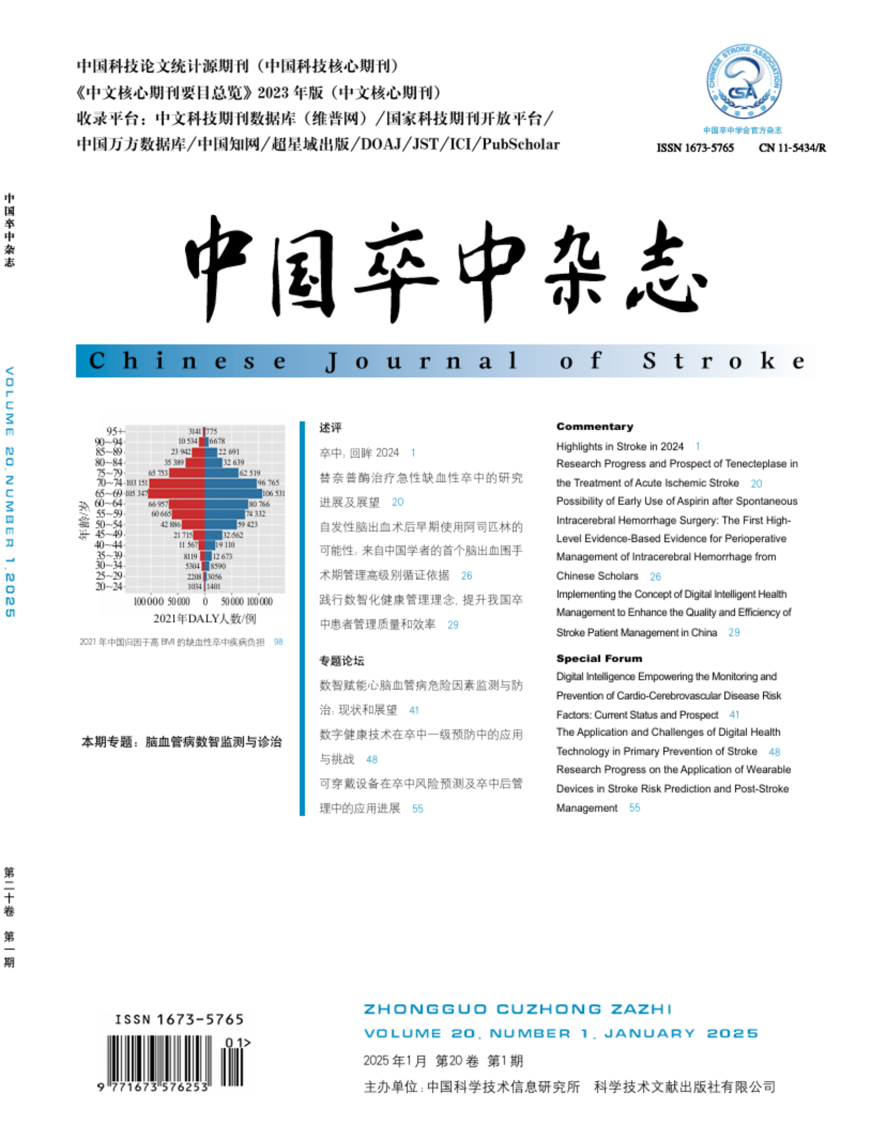 《中国卒中杂志》是由中华人民共和国科技部主管,中国科学技术信息研究所、科学技术文献出版社主办,面向全国公开发行的医学专业高级学术性科技核心期刊、北大中文核心期刊,于2006年创刊,主要报道脑血管疾病相关的基础、临床和流行病学研究的最新国内外成果、工作进展及研究动态。值此期刊创刊二十周年之际,编辑部特邀武剑教授作为执行主编,针对脑血管病数智监测与防治相关话题展开讨论,正如武剑教授所述,人工智能已成为不可阻挡的潮流和趋势影响了疾病的变革,未来我们应该如何看待这些技术,如何推动临床诊疗,如何把科技成果应用在提升脑血管病诊治水平和效率,提升健康水平,是值得我们每一个医疗从业者值得思考的问题。