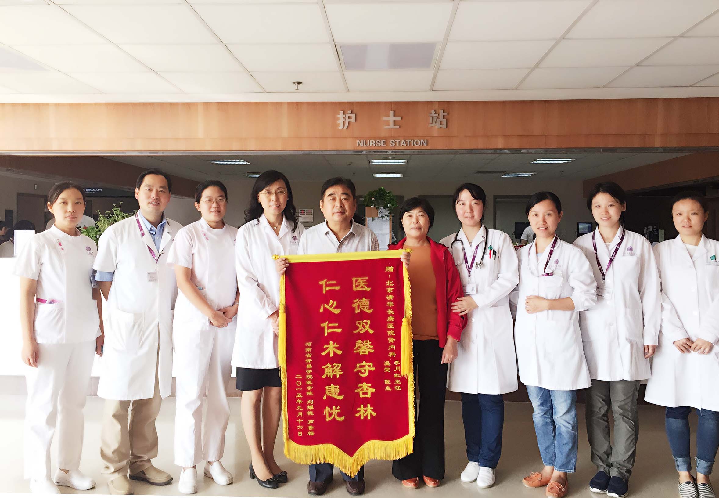 10多年的顽症终于揭开了面纱,患者非常宽慰,感慨万分:“我要是早点儿到你们清华长庚医院,早点儿遇到你们这些大夫该多好啊!我得少吃多少不该吃的药,少受多少罪呀!”治疗上略作调整后,骨科陈连旭主任为患者制定了膝关节病变治疗的后期方案。与此同时,李主任发现陪伴患者的老伴因患有强直性脊柱炎,颈椎僵直几乎处于不能转头的状态,已很长时间没做检查,也没用任何药物治疗,也给出了详细的检查和治疗方案,并请康复科指导制定运动康复体操,症状明显改善。患者满意地出院了,出院时夫妻两个高兴的说:“以后做关节手术还要来你们医院,我们去过那么多医院,你们的医术和医护服务是最好的!真是用语言无法表达!”对于医护人员,给患者以明确的诊断和精准的治疗是最幸福的事。“医德双馨守杏林,仁心仁术解患忧”,送来的锦旗最能表达患者及其家属的心境,年轻的北京清华长庚医院会用仁心和医术,造福每一位患者。(肾内科 供稿)
