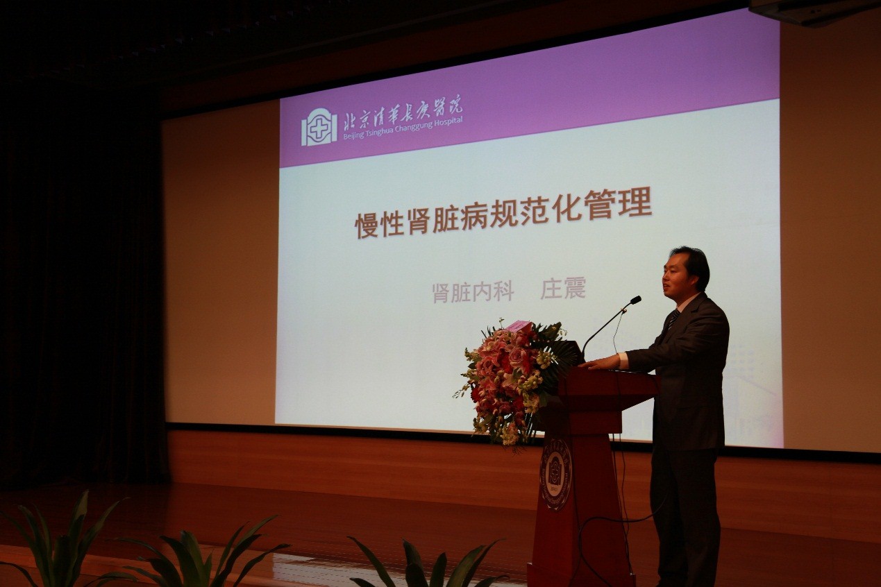 会议开始首先由北京清华长庚医院总执行长郭明和先生致词,并向参会人员介绍北京清华长庚医院先进的管理模式、医疗特色及我院开业以来取得的成果,同时介绍了肾内科目前医护人员配备、先进的仪器设备、所开展的项目及开业一年来取得的成绩。肾内科收治了很多急危重症患者,开展了床旁CRRT及枸橼酸抗凝,进行了包括马蹄肾、血小板减低、骨髓移植等高难患者的肾活检检查,有关新月体肾炎、狼疮性肾炎、败血症、多器官功能衰竭的抢救达到北医系统同级医院的临床水平,对肾内科寄予了厚望,祝愿北京市清华长庚医院肾脏内科不断发展!