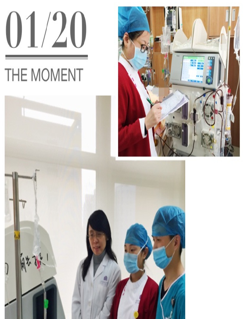 2016.1.20日下午4点,紧张忙碌的工作就要结束,伴随着紧急的电话铃声,ICU一名91岁COPD并发脑梗、严重肺部感染的患者,出现高热39.0℃、心衰、肾衰、呼衰、房颤,气管插管呼吸机辅助呼吸后,需要做持续床旁肾脏替代治疗。考虑到患者高龄,有严重出血风险,肾内科李月红主任立即制定治疗方案,给予患者枸橼酸抗凝CRRT治疗,李敏侠和庄震医生紧急进行中心静脉置管,透析护理团队半小时内做好上机准备。按详细的治疗方案及操作步骤,医护有条不紊地进行操作连机,面对如此高龄、高风险患者,血透室的医生和护士一直静静地守护在患者床边严密观察,1小时、2小时、4小时……,根据患者生命体征随时调整透析治疗方案,将各项指标均控制在理想范围内。此次枸橼酸抗凝CRRT治疗持续了53小时!患者心衰纠正,生命体征好转,凝血功能未见异常,无继发出血,血肌酐下降到93umol/l。年轻的北京清华长庚医院肾内科用枸橼酸抗凝CRRT技术,成功抢救如此高龄、多并发症的高危患者,今后将为更多危重患者带来福音。