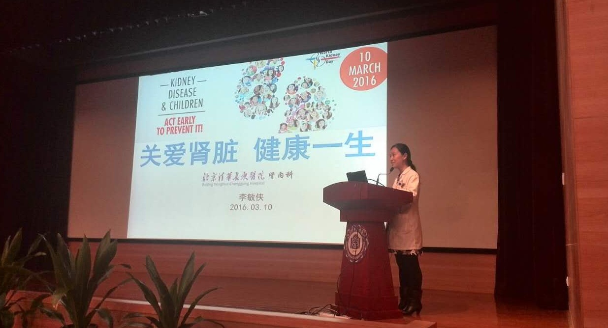 北京清华长庚医院3月10日电 (作者:李敏侠 ) 3月10日是世界肾脏日,北京清华长庚医院肾内科联合儿科共同举办了“关注儿童肾脏健康”的主题活动,吸引了周边居民的积极参加,由庄震医师主持,肾内科李敏侠医师、儿科季丽娜副主任医师分别做了“关爱肾脏,健康一生”、“小小肾脏,如何呵护”的演讲,儿科王雪燕护士长、血液透析室李梦雅护士分别做了“儿童用药安全”和“儿童饮食与肾脏健康”的报告。